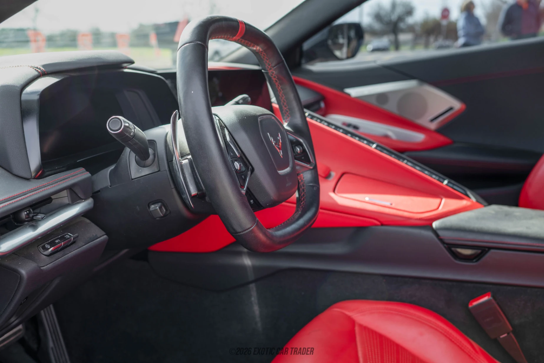 This 2022 Chevrolet Corvette showcases those aggro and purposeful lines in a coat of Hypersonic Gray Metallic paint. With its prominent rear spoiler, quad exhaust tips and black wheels, this is a car that will turn heads and prick up ears wherever you drive it. The paint job has a slight color-shifting effect about it; you’ll notice the tendency towards a green tint in some of our photos. Meanwhile, the brake calipers are picked out in red and they are proper, high-performance units as required for such a thoroughbred sports car. The interior of this 2022 Chevrolet Corvette comes in Adrenalin Red. It’s got two GT2 bucket seats that are not only power adjustable, but heated and cooled as well. There’s a Bose Professional Series speaker system on board, while Apple CarPlay and Android Auto ensure that your smartphone connectivity is a cinch. A digital gauge cluster, a multifunction steering wheel and a suite of active and passive safety features is also present in this lovely grand tourer. As for cargo, there’s a frunk plus a rear cargo compartment behind the engine bay.