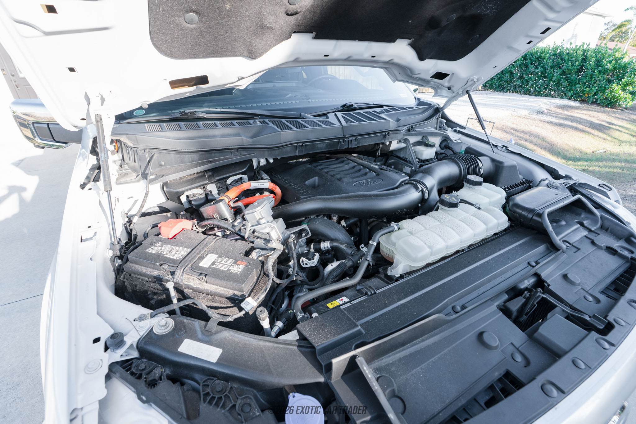 The Ford F-150 has long been America’s benchmark full-size pickup, but the 2022 F-150 4x4 SuperCrew equipped with the PowerBoost hybrid system represents a major evolution of that legacy. By pairing a twin-turbocharged EcoBoost V6 with an electric motor, Ford created a truck that delivers serious torque, improved efficiency, and advanced onboard technology without sacrificing capability. This particular example, showing just over 34,000 miles, is finished in the highly desirable Platinum Series trim under Equipment Group 701A, meaning it sits near the top of the F-150 lineup in terms of luxury and technology. With features such as BlueCruise hands-free driving capability, the FX4 Off-Road Package, Trailer Tow Package, and the B&O Unleashed 18-speaker sound system, this truck blends work-ready toughness with executive-level comfort. It is equally at home towing a trailer, heading off-road, or commuting in refined silence on electric assist.