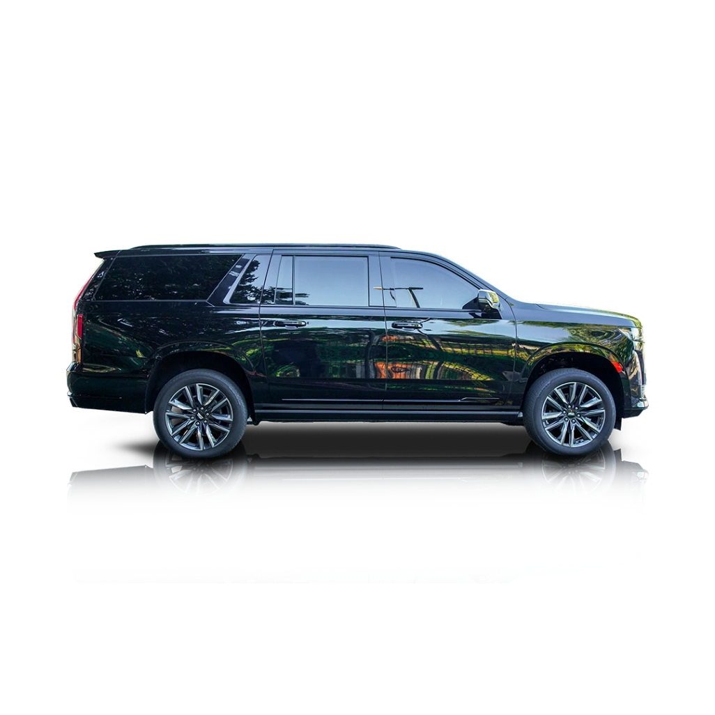 The Black Raven-colored exterior of our featured 2023 Cadillac Escalade ESV 4WD Sport Platinum is entirely bulletproof thanks to a custom solution offered by Exec Armor. The owner reports that the protection is B6-level armor. The work carried out includes all windows and doors made bullet proof, with the entire roof area being armored throughout using a ballistic plate contoured to the shape of the roof. All original glass has been removed and replaced with multi-layered ballistic glass. Protection is further extended with an armored floor and firewall, while an armored bulkhead swing door is behind the original door with a large glass insert. The fuel tank is also armored and sealed, as are the battery and computer. There’s also customized tailpipe protection and armored louvered radiator protection concealed behind the vehicle's hood. Continued mobility in the event of an attack is ensured thanks to custom bulletproof tires, which are also run-flat tires all around, including the spare. The jet-black interior is kept safe thanks to the entire passenger area being armored with ballistic plates throughout and overlapping in all areas. Rear-seat passengers can roll down their windows if required. Passengers will also be able to enjoy high-quality sound thanks to AKG Audio speakers.