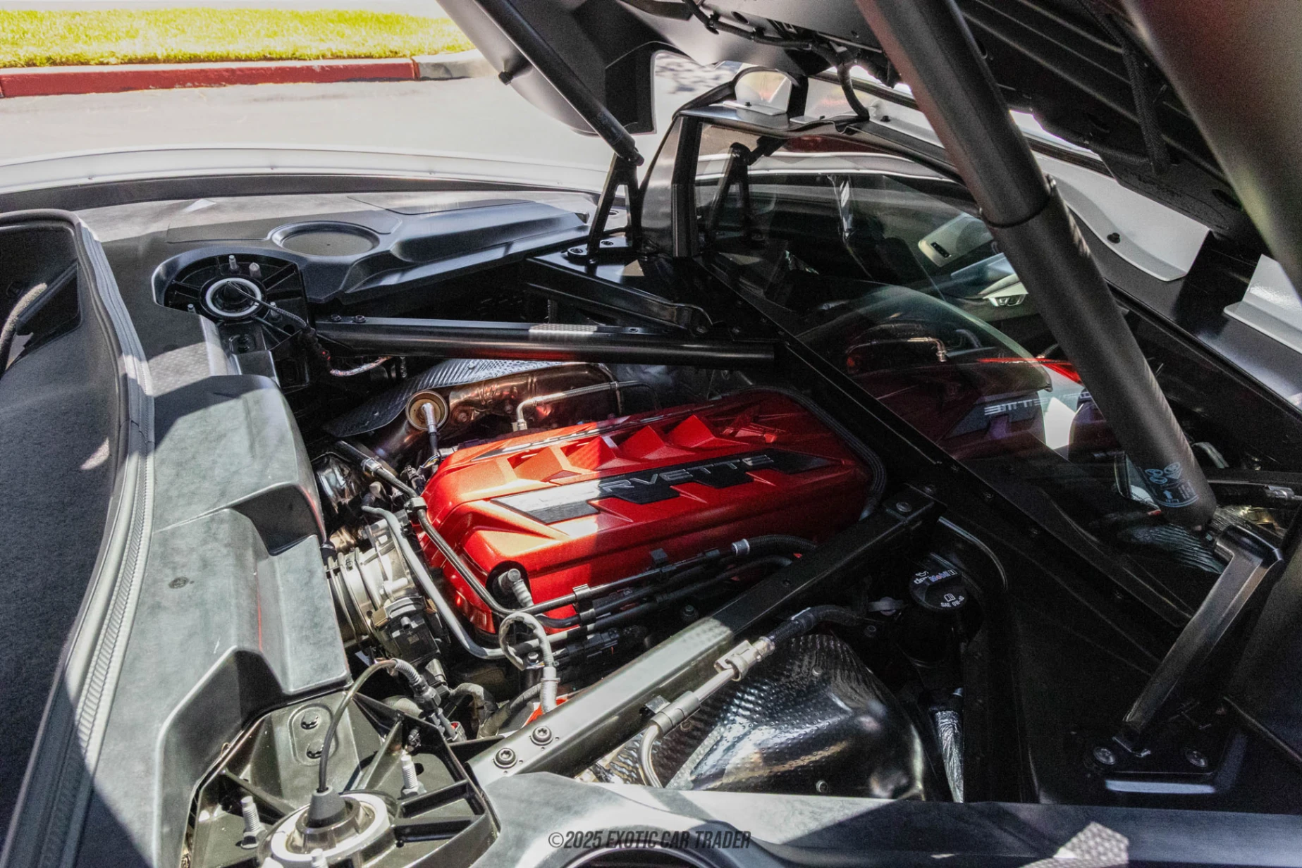 This 2023 Chevrolet Corvette Stingray Coupe 3LT Z51 70th Anniversary Edition uses a naturally aspirated 6.2-liter V8 with a bright red engine cover, directly placed behind the passenger compartment. Since this is a Z51-equipped car, it’s got 495hp and 470lb-ft to play with. Power goes to the rear axle via an 8-speed dual-clutch automatic gearbox. Furthermore, you’ll find Z51 performance suspension, Z51 performance brakes, and even magnetic ride control. This is truly a top-tier sports car, and a definitive future classic!