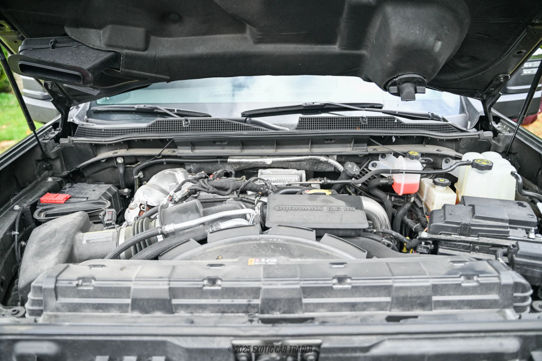 Under the hood, the optional Duramax 6.6-liter turbo-diesel V8 provides exceptional towing strength, assisted by the 3.42 rear axle ratio and the integrated Gooseneck/5th Wheel Package. Combined with dual alternators supplying up to 390 total amps of charging capability, the truck is well-equipped for high electrical demands such as towing, auxiliary equipment, and extended idling. The 6.5-inch BDS lift system replaces factory suspension components with heavy-duty crossmembers, upgraded steering knuckles, and FOX shocks that greatly improve damping control and comfort, especially on uneven terrain or when carrying heavy loads. Safety and driver-assistance technologies—such as automatic emergency braking, lane departure warning, following distance indicator, and IntelliBeam—round out a mechanical package aimed at balancing power, stability, and confidence whether towing, off-roading, or driving long distances.