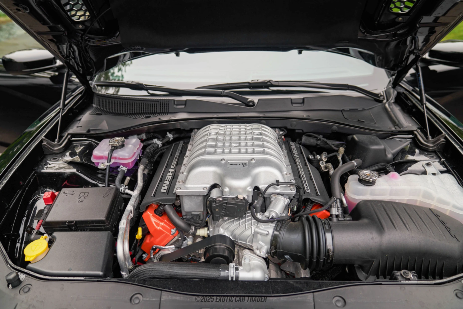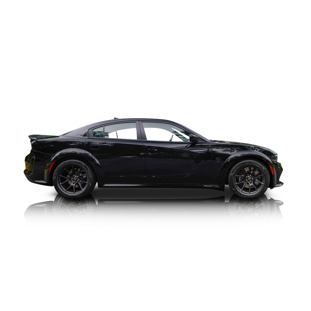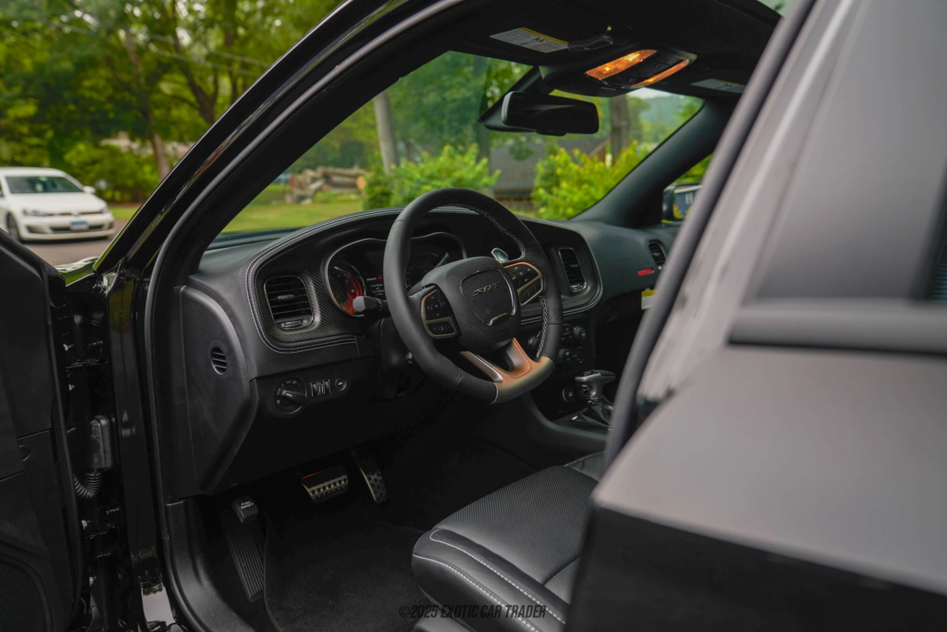 The sinister looks of the seventh generation Charger are further enhanced by the Pitch Black paintwork of this 2023 Dodge Charger SRT Hellcat Jailbreak. It’s a car for those who don’t want to mince words, for those who shouldn’t be trifled with. The car’s black SRT spoiler, Midnight Metallic exterior badging and 20x11 lightweight low-gloss granite wheels all add to its no-nonsense persona. Meanwhile, even the brake calipers are painted in black to maintain the overall dark theme of the car’s exterior. Two silver tailpipes at the rear serve as mouthpieces for the mega V8 that lurks within the beast. The interior of this 2023 Dodge Charger SRT Hellcat Jailbreak also comes in black, with seating for up to five adults. It’s a well-specified place, with a premium audio system, a full infotainment suite, air conditioning with automatic climate control, cruise control, a multifunction steering wheel, and the usual powered convenience features. The front and outboard rear seats are heated, and both rows have access to USB device charging ports too. Behind the passenger compartment lies your typical sedan-sized trunk, ready to accept the luggage of life.