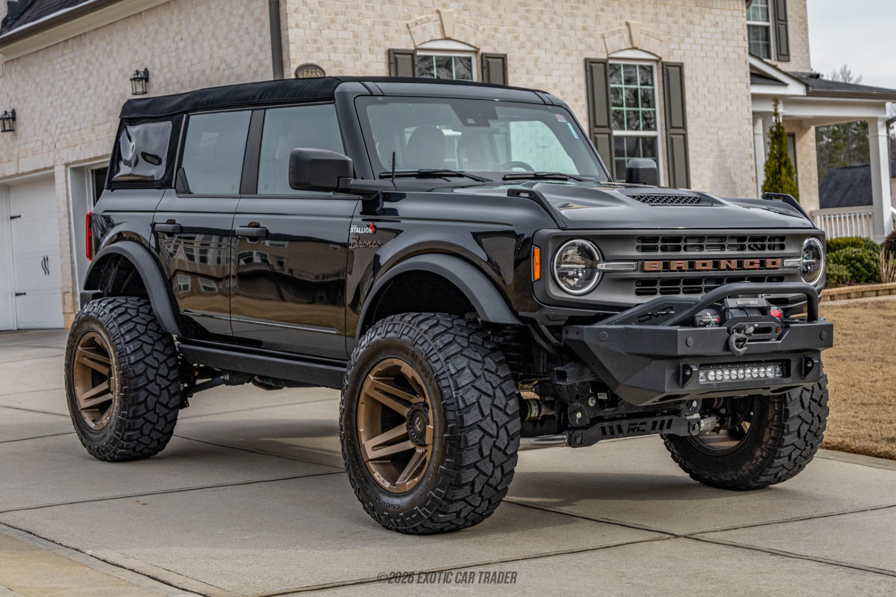 This 2023 Ford Bronco starts with the turbocharged 2.3L EcoBoost engine and 10-speed automatic, a combination focused on balanced power and efficiency for daily use and light off-road exploring. Featuring over 10,000 miles, it has then been heavily upgraded with a 5” lift, 37” tires, armor-style bumpers and a winch, transforming a basic Bronco into a trail-ready build that still keeps modern safety features like integrated rear sensors. The custom leather interior and tuning work make it feel more special than a typical base model while preserving the open-air Bronco fun.