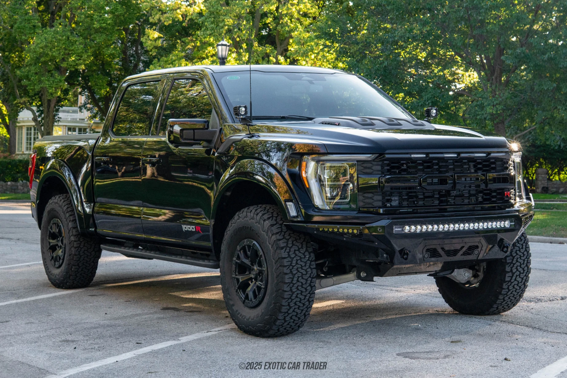 The 2023 Ford F-150 Raptor PaxPower 1000R transforms Ford’s flagship off-road pickup into a limited-production supertruck, delivering an estimated 1,000 horsepower and 785 lb-ft of torque from a custom-tuned 5.2L supercharged V8 enhanced by a Whipple Generation 6 3.8L supercharger, 132mm billet Roval throttle body, and dual-pass intercooler system. This example, number 51 of only 55 built for the U.S. market, features the full PaxPower 1000R upgrade along with Stealth Fighter front and rear bumpers, Rigid Radiance lighting, paint-matched flares, and adaptive cruise integration. Ordered new with a factory-installed center console safe and a LEER retractable tonneau cover with four integrated drains, the truck’s decals were deleted for a clean “Stealth Mode” aesthetic, and a professional ceramic coating was applied six months ago for lasting protection. The result is one of the rarest, most extreme street-legal trucks ever built—an audacious fusion of supercar power and Raptor-level off-road capability.