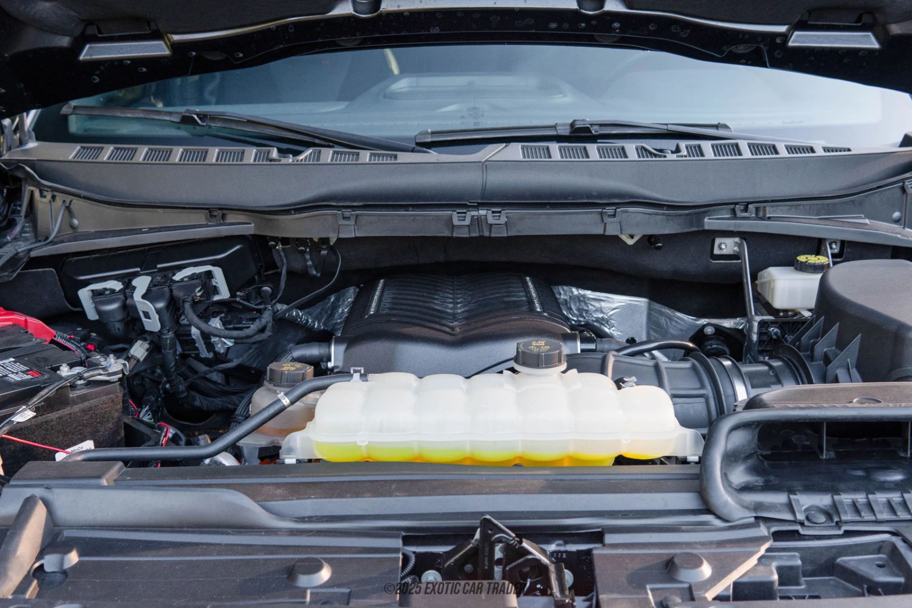 Powering this 1000R is a hand-built 5.2-liter supercharged V8 engine featuring a Whipple 3.8-liter supercharger system, high-flow intake, upgraded intercooler, and custom ECU calibration. Together, these components deliver roughly 1,000 horsepower and immense torque, giving the truck exhilarating acceleration on and off the pavement. A cat-back performance exhaust with dual black tips enhances the exhaust note while maintaining refined drivability. The power is managed through a 10-speed automatic transmission and a four-wheel-drive system engineered for both stability and precision. The Fox Live Valve adaptive suspension has been recalibrated by PaxPower to complement the added performance, providing smooth on-road comfort and superior off-road control. The result is a truck that feels as composed at highway speeds as it does conquering demanding terrain—a rare combination of power, capability, and craftsmanship.