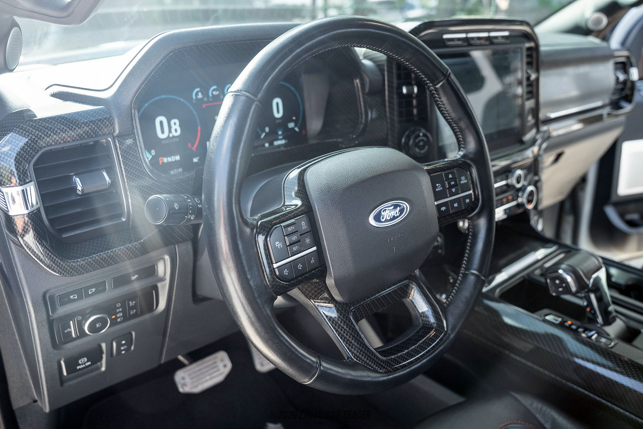 The exterior of this 2023 Ford Shelby F-150 is finished in Avalanche, a modern and clean shade that perfectly complements the truck’s aggressive styling. Shelby-specific elements such as the bold front grille, functional hood vents, and signature racing stripes give it unmistakable presence. The truck sits on 22-inch Shelby wheels wrapped in all-terrain tires, providing both rugged capability and street-ready style. Additional features such as the Shelby bed cover and Amp Research power running boards enhance both functionality and convenience, while the upgraded suspension components contribute to its commanding stance. The interior of this 2023 Ford Shelby F-150 blends premium Ford comfort with subtle Shelby enhancements. Finished in black leather, the cabin is equipped with the Lariat 502A package, offering features such as a large infotainment system, wireless charging, and a premium B&O Unleashed sound system. Carbon fiber trim and Shelby badging add a performance-oriented touch without compromising the truck’s refined feel. The spacious SuperCrew layout ensures comfort for all passengers, while modern driver assistance systems and a 360-degree camera make daily driving and maneuvering effortless.