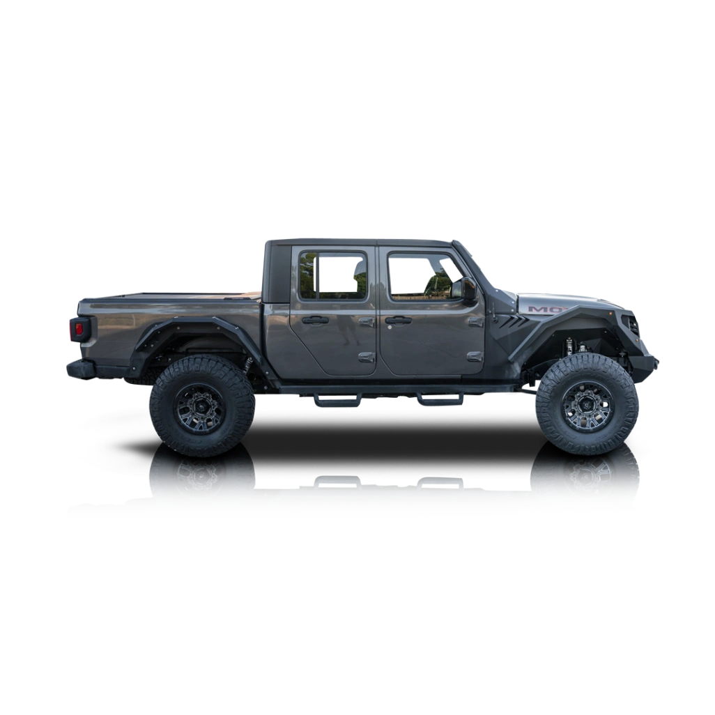 This 2023 Jeep Gladiator Mojave 4x4 uses the sturdy and proven 3.6-liter Pentastar V6 from Chrysler. With a reported 285 horsepower and 262 lb-ft of torque, you’ve got enough urge for all driving duties. Power goes to the wheels through an 8-speed automatic transmission, and you can select between rear-wheel drive or four-wheel drive depending on terrain circumstances. This vehicle has also got FOX 2.0 performance shocks, a BDS dual steering stabilizer kit, upgraded front suspension links and brackets, and so much more.
