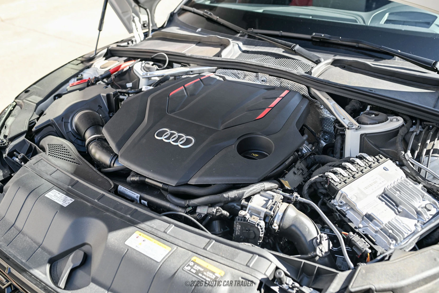 Power comes from Audi’s 3.0L TFSI turbocharged V6, producing 349 hp and 369 lb-ft, sent through an 8-speed automatic to the Quattro all-wheel drive system for confident all-weather traction. With launch-friendly gearing and strong midrange torque, the S5 Sportback can sprint to 60 mph in the mid-4-second range when properly equipped. This car is equipped with the S Sport Package, adding Sport Adaptive Damping Suspension, a Sport Rear Differential & red brake calipers to sharpen handling and improve corner-exit traction. Combined with the Black Optic Plus 20” wheel & summer tire setup, the result is a Sportback that turns in more eagerly, maintains better grip and delivers stronger braking performance during spirited driving while still offering a compliant ride in its comfort-oriented drive modes.