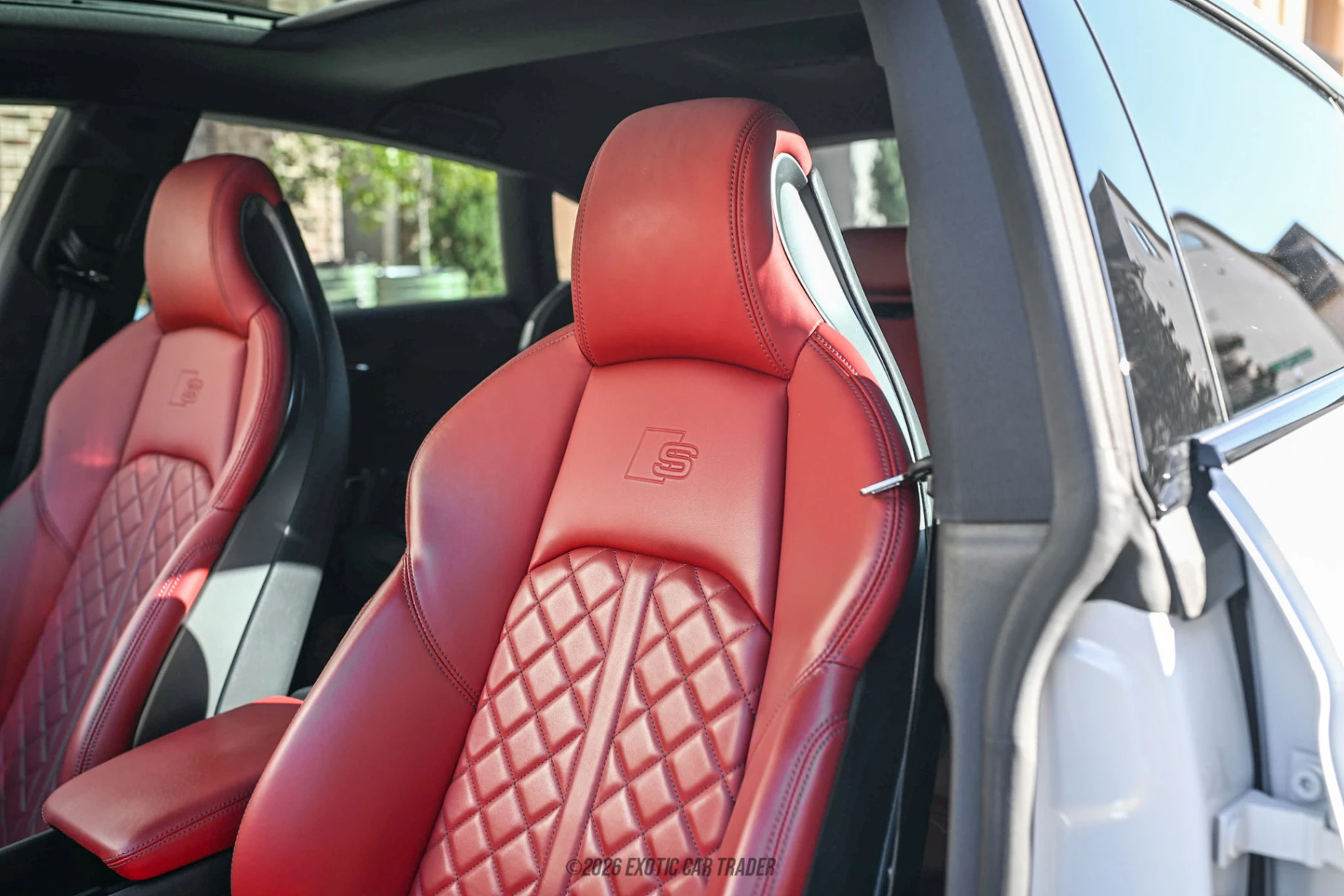 The exterior of this 2024 Audi S5 Sportback Prestige 3.0 TFSI quattro is Glacier White Metallic w/ the Black Optic Plus Package, which adds black exterior mirror housings & exhaust tips, black exterior trim, black Audi rings & badges, a black rear lip spoiler, black fender badges & 20” 5-twin-spoke polygon design wheels wrapped in 265/30R20 XL summer tires for a more aggressive stance. The Sportback body style brings a low roofline and wide shoulder line, while S-specific details such as quad exhaust outlets and unique front & rear fascias underline its performance intent. The interior of this 2024 Audi S5 Sportback Prestige 3.0 TFSI quattro is finished in Magma Red Fine Nappa Leather Seating Surfaces, pairing deeply bolstered sport seats with high-quality materials and the latest Audi MMI infotainment system. As a Prestige model it typically includes features such as a Bang & Olufsen 3D sound system, head-up display, advanced ambient lighting & expanded driver aids, elevating comfort on longer drives. The practical hatch and split-folding rear seats also make this S5 easier to live with than a traditional sedan while retaining its premium cabin feel.
