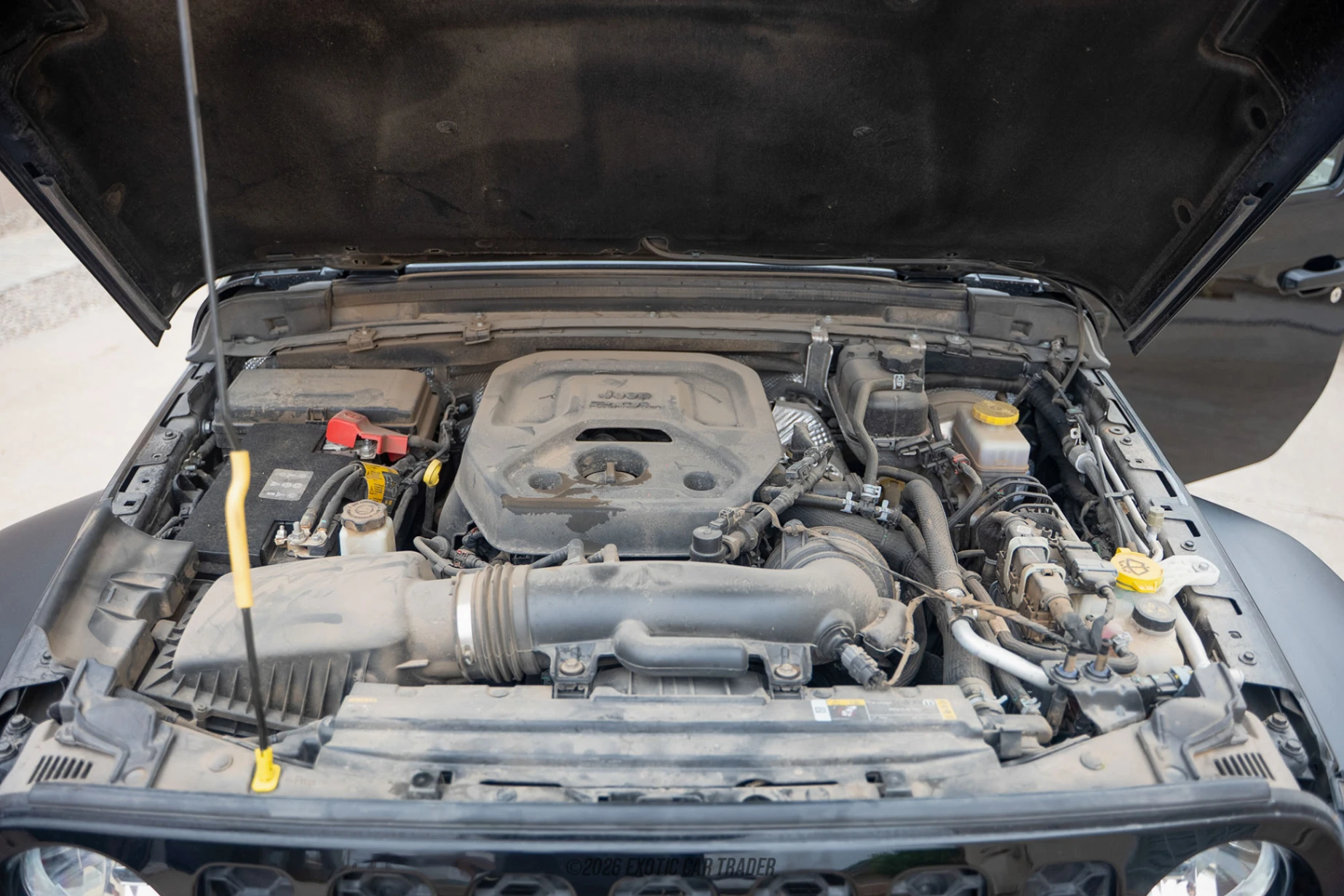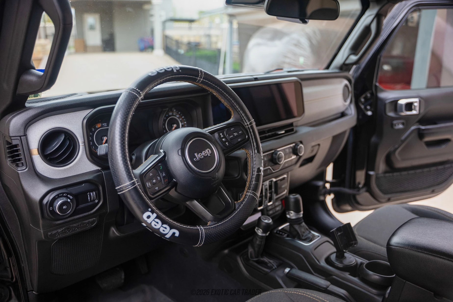 Powering this Wrangler is a 2.0L turbocharged inline-4 engine paired with an 8-speed automatic transmission, offering responsive acceleration and improved efficiency over traditional V6 options. The Command-Trac 4WD system ensures dependable off-road capability, while features like hill-start assist and a heavy-duty rear axle enhance its performance in challenging terrain. With the added Trailer Tow & Auxiliary Switch Group, this setup is also ready for towing and accessory integration, making it a versatile and capable all-around SUV.