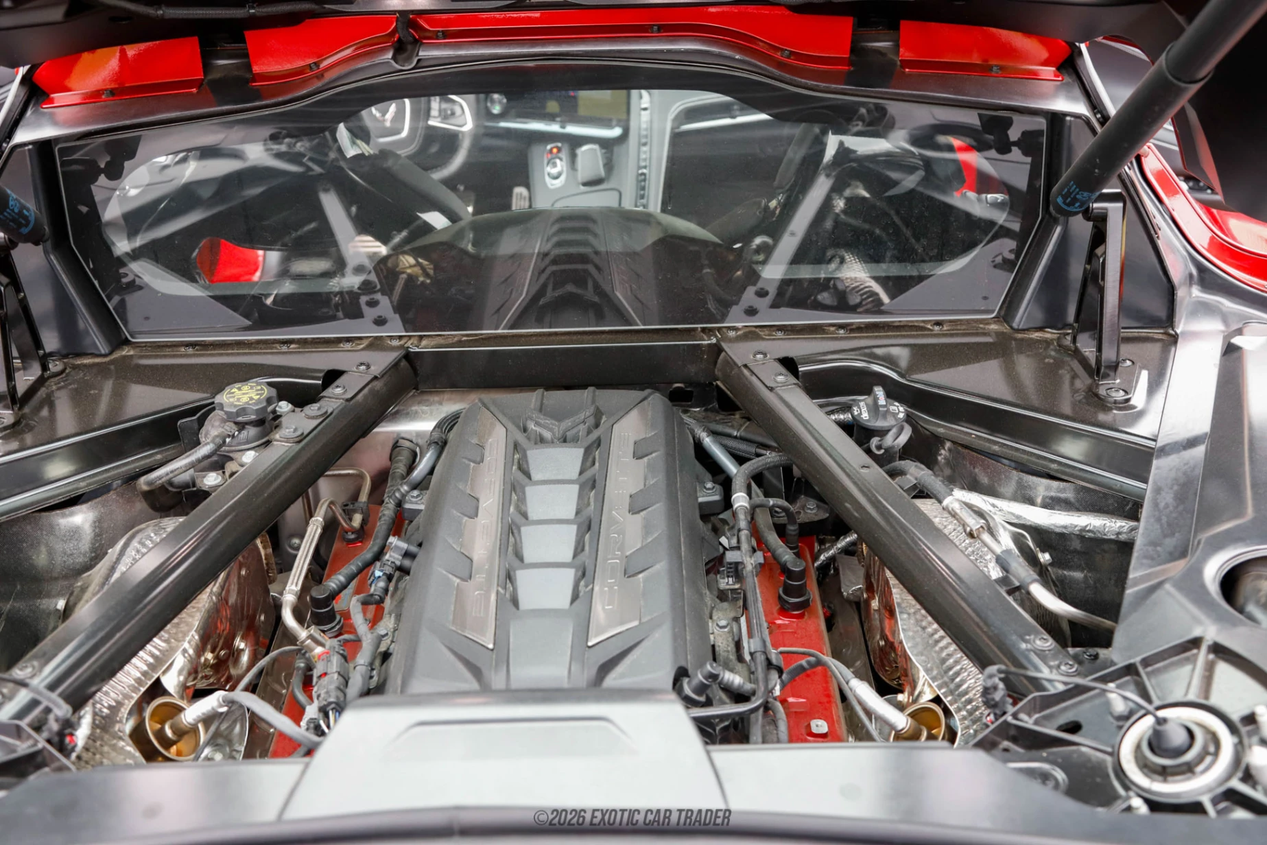 This 2025 Chevrolet Corvette E-Ray 2LT has the same 6.2-liter V8 as the regular Corvette. It’s rated at 490hp and 465lb-ft. Paired with an 8-speed dual-clutch transmission, it powers the rear axle. But where the E-Ray diverges is with its 160-horsepower electric motor for the front wheels. Hence, the car is all-wheel drive and delivers a whopping 655 horsepower! The peak torque figure is equally impressive, at 595lb-ft. So, you can see 0-60 in just 2.5 seconds.