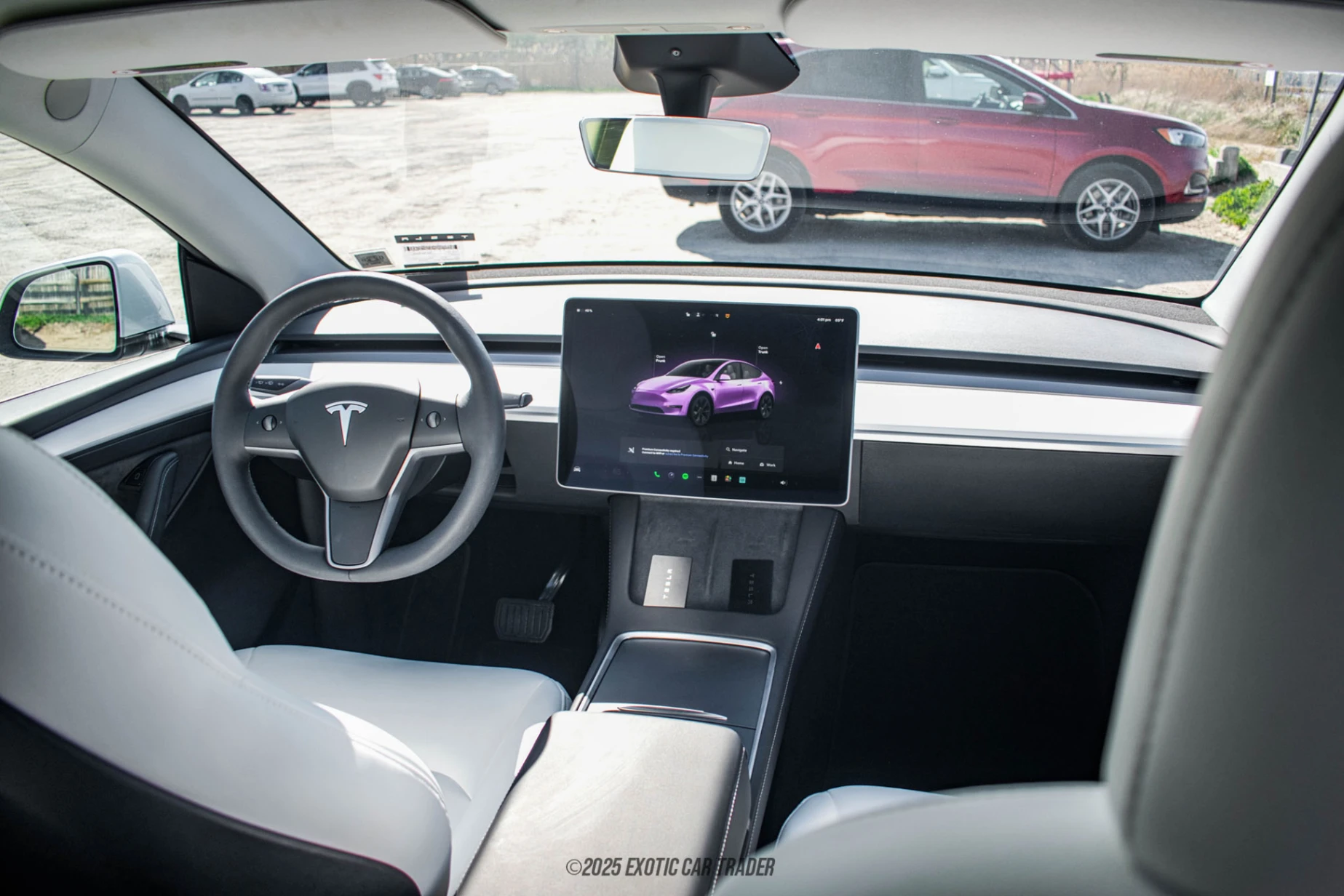 The Model Y continues Tesla’s design ethos of clean and modern design, and is the work of Franz von Holzhausen, Tesla’s Chief Designer since 2008. This man has penned all of Tesla’s current models, and you can see the influence in this 2025 Tesla Model Y. The Pearl White Multi-Coat exterior looks futuristic as it glides smoothly and silently on 19-inch Gemini wheels. Frameless doors and LED lights are part of the package, too. The five-seat interior of this 2025 Tesla Model Y features white leather upholstered seating and a minimalistic theme. Everything is controlled via the large central touchscreen, with only a handful of buttons here and there. The vehicle comes with Tesla’s famed Autopilot system too, granting you autonomous driving capabilities, but be aware that legally, you’re still responsible for any accidents, so must keep an eye on the car as it navigates its environment.