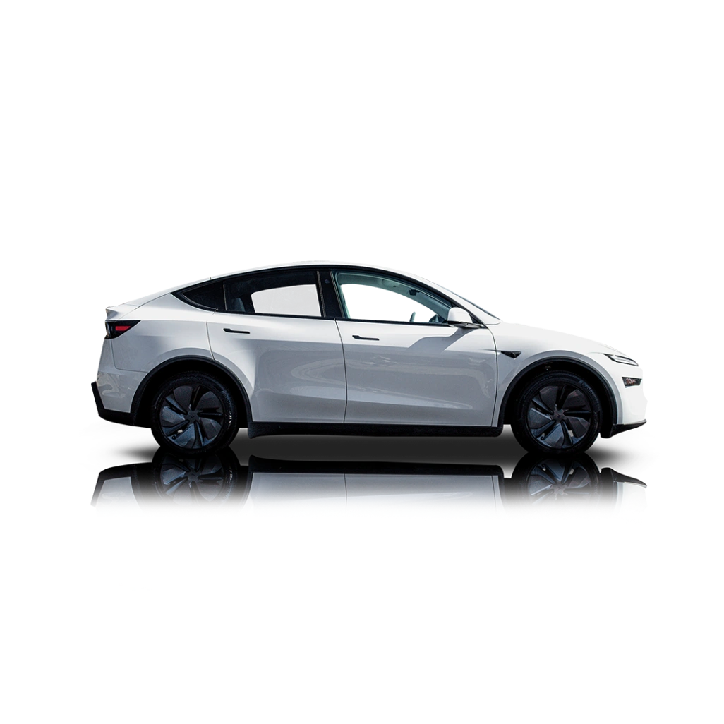 This 2026 Tesla Model Y Launch Edition wears a Pearl White coat of paint and rolls on a set of 19-inch aerodynamically designed alloy wheels. These are shod in Continental ProContact tires for optimal grip and performance, given that performance is a key attribute of Tesla’s vehicles. In fact, the overall design of the Model Y, like other Teslas, screams effortless performance. The aerodynamic design, futuristic lines and overall space-age presence mean that you can never mistake a Tesla for anything else – be it American, European or Far Eastern. The sleek black interior features white seats and can accommodate five adults with ease. It may look highly minimalistic at first glance but looks are indeed deceiving. There’s so much tech on board, backed by a ton of processing power. In fact, you can engage in console-level gaming via the car’s systems, such is the computing prowess available. OF course, you’ve got the usual dual-zone automatic climate control, power front seats, smartphone connectivity and the essentials of modern automotive amenities at your fingertips. Rear-seat passengers get their own touchscreen for adjusting settings too. And for cargo, there are two spaces! Yes, the regular trunk out back is there, plus a front trunk, or frunk for even more capacity.