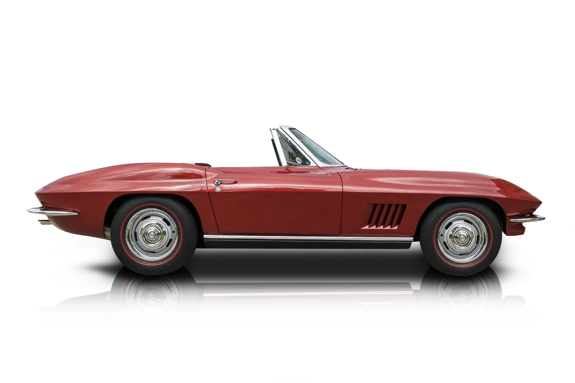 This 1967 Chevrolet Corvette Stingray Convertible L79 represents one of the most desirable combinations of style, performance, and collectability in American automotive history. As the final year of the second-generation (C2) Corvette, 1967 models refined the formula that made the Stingray legendary. This example, finished in striking Marlboro Maroon over black vinyl, houses the potent L79 327ci V8 rated at 350 horsepower—an engine revered for its responsiveness and balance. With a 4-speed manual gearbox, power steering, and a timeless roadster silhouette, this Corvette delivers an authentic driving experience and classic allure that perfectly captures the golden era of American performance.